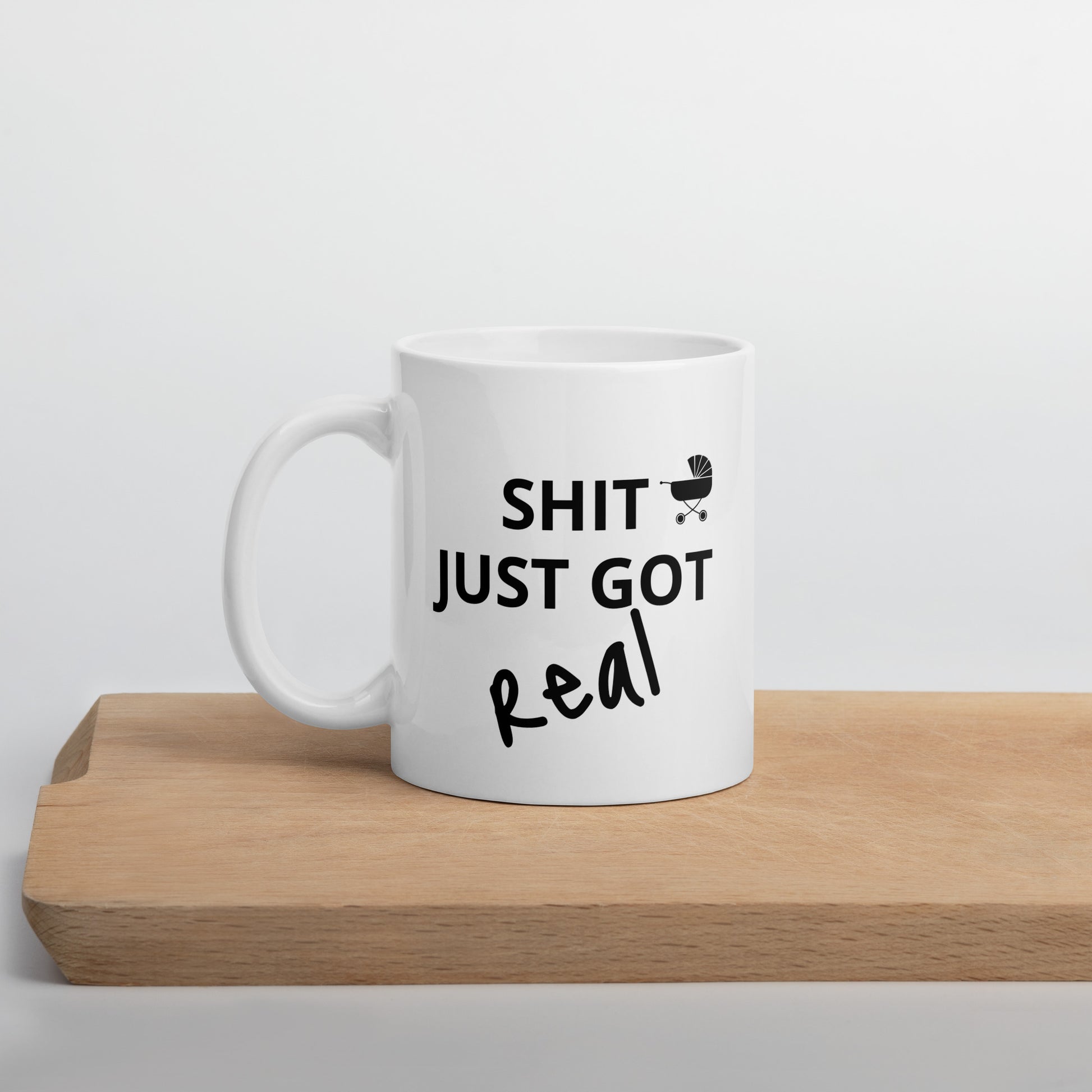 Shit Just Got Real (Baby Shower/Arrival Gift)-White glossy mug